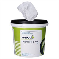 Avfettningsdukar i doseringshink 450mm x 300mm - 70st "Vid behov av mer kontroll vid avfettning; det stänks ofta överspray på pappersmaskade ytor eller obehandlade tejp när pumpflaska används. SOF 25 med avfettningsmedel är klar för användning. Häll i hinken 3L av det vattenbaserade avfettningsmedlet och den är klar att användas. Varje duk som tas bort från hinken är fylld med avfettningsmedel för extra kontroll.