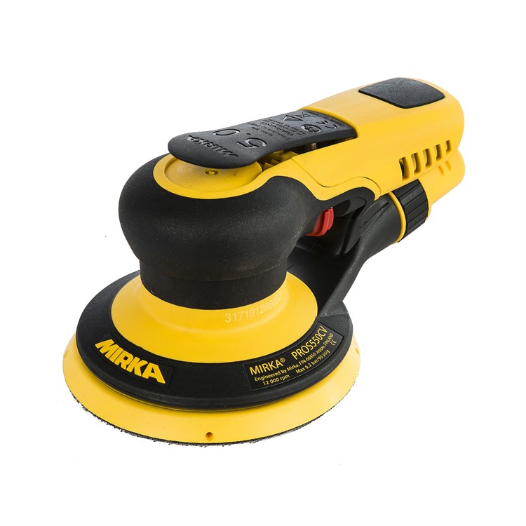 Den luftdrivna Mirka® PROS 550CV excenterslipmaskinen är ett funktionellt och effektivt slipverktyg för proffs. Som alla Mirka-maskiner är även Mirka PROS ergonomiskt utformad, och du kan få ett bra grepp om maskinen så att den är behaglig att använda även under längre arbetsperioder. Mirka® PROS 550CV-maskinen har en excentrisk rörelse på 5 mm och dammutsugningen har utvecklats för att vara så effektiv som möjligt, även med låg sugkraft, tack vare den bredare dammutsugningsöppningen som finns i maskinkroppen. En bredare dammborttagningsöppning förbättrar dammavlägsnandet avsevärt.